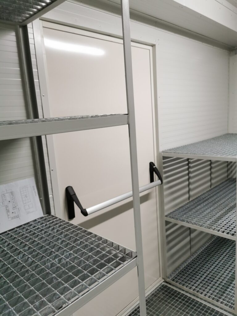 Acoperișul containerului poate susține o încărcătură de până la 350 kg pe metru pătrat, asigurând protecția și siguranța conținutului în interior. În plus, este posibilă instalarea unei podele ranforsate suplimentar, perfectă pentru depozitarea unor utilaje grele, cum ar fi transformatoarele de curent electric.